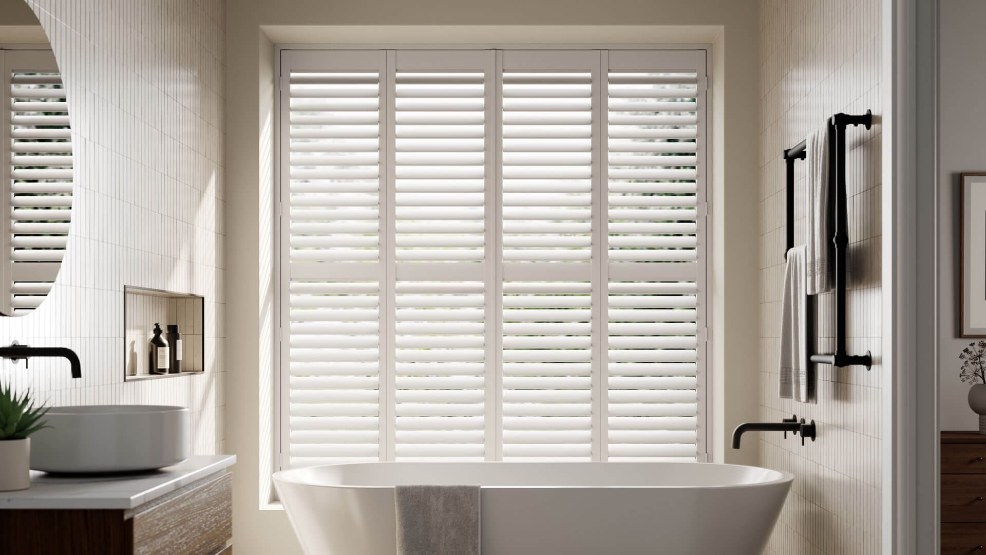 Dulwich shutters are ideal for any room, especially high-moisture environments like kitchens, bathrooms, ensuites, and utility rooms. The aluminium core housed inside the shutter ensures longevity and rigidity. Dulwich shutters bring elegance to any room without sacrificing functionality.