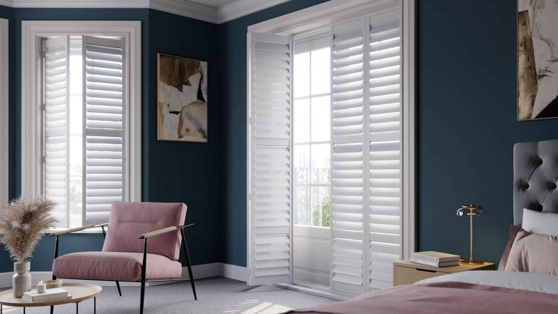 Tracked shutters come in two distinct styles to suit your needs. Choose bifold shutters for an even number of hinged panels that fold neatly back. Or instead opt for bypass shutters, where panels slide behind one another for a more streamlined opening.